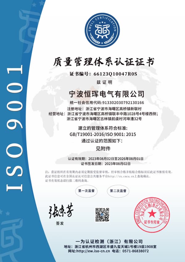 The authoritative certifications are the cornerstone of our quality commitment. Every international and domestic certification that Henghui Electric has obtained not only represents strict compliance with the highest industry standards, but also is our solemn promise to customers regarding product safety, reliability and outstanding performance. These certificates are the passport for our products to travel worldwide and are the tangible evidence of your trust in us.